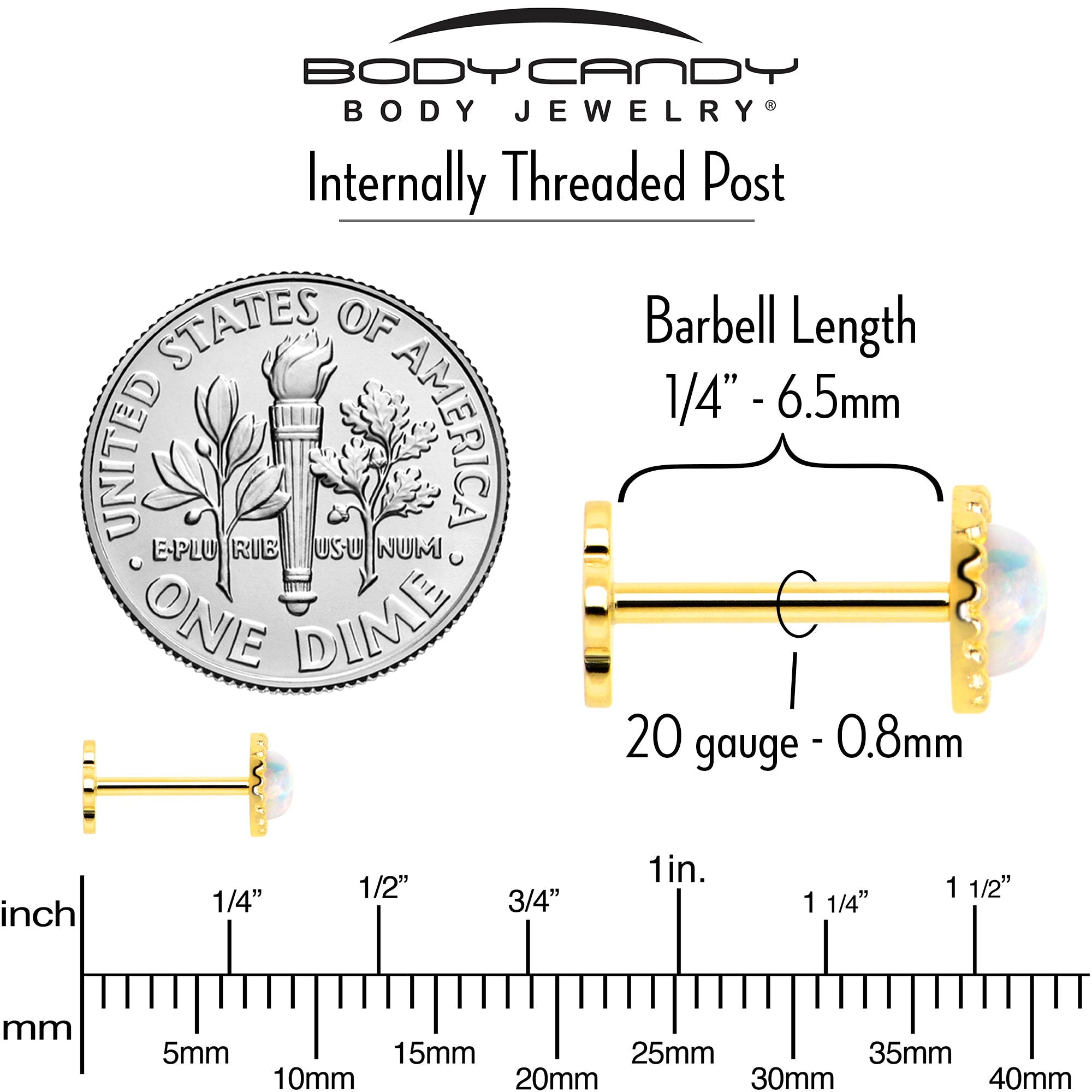 14k Yellow Gold Flat Back Earring 20G 3mm Synthetic Opal Floral Reversible