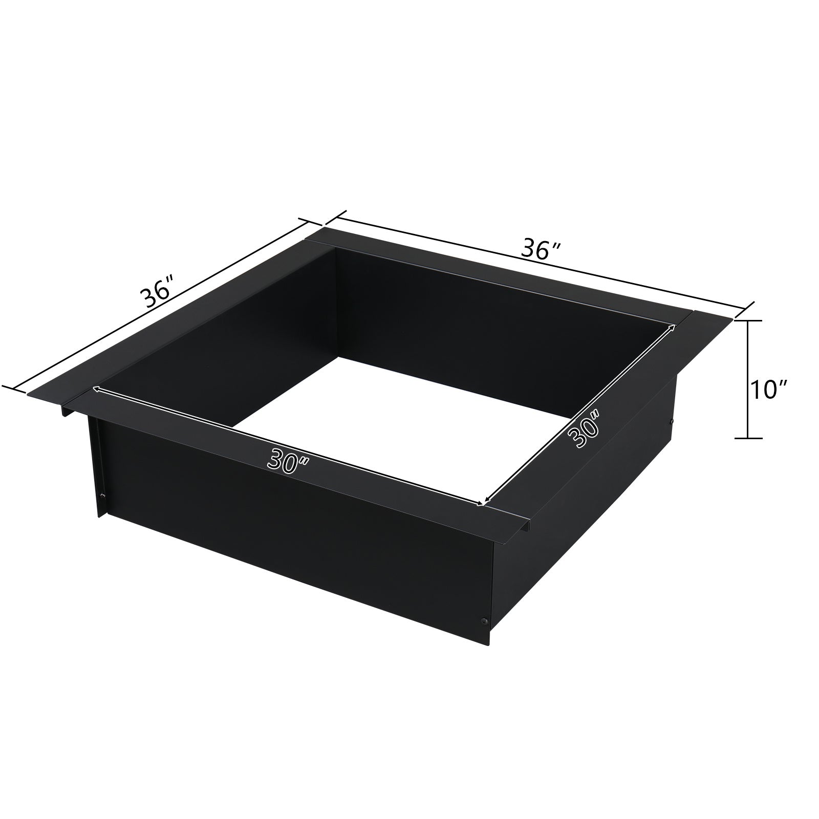 36" x 36" Square Fire Pit Ring.Surface black coating & 30" x 30" inner size & without hurting hand.This fire pit ring is excellent for DIY using and can be used in-ground or above ground in the park or yard. The heavy-duty steel with coating surface makes the fire pit liner more durable and sturdy. It's worth noting that our fire ring insert is 30" x 30", so it is an ideal option to create a warm atmosphere. Moreover, this fire pit ring is connected with screws so that it is easy to assemble and disassemble.