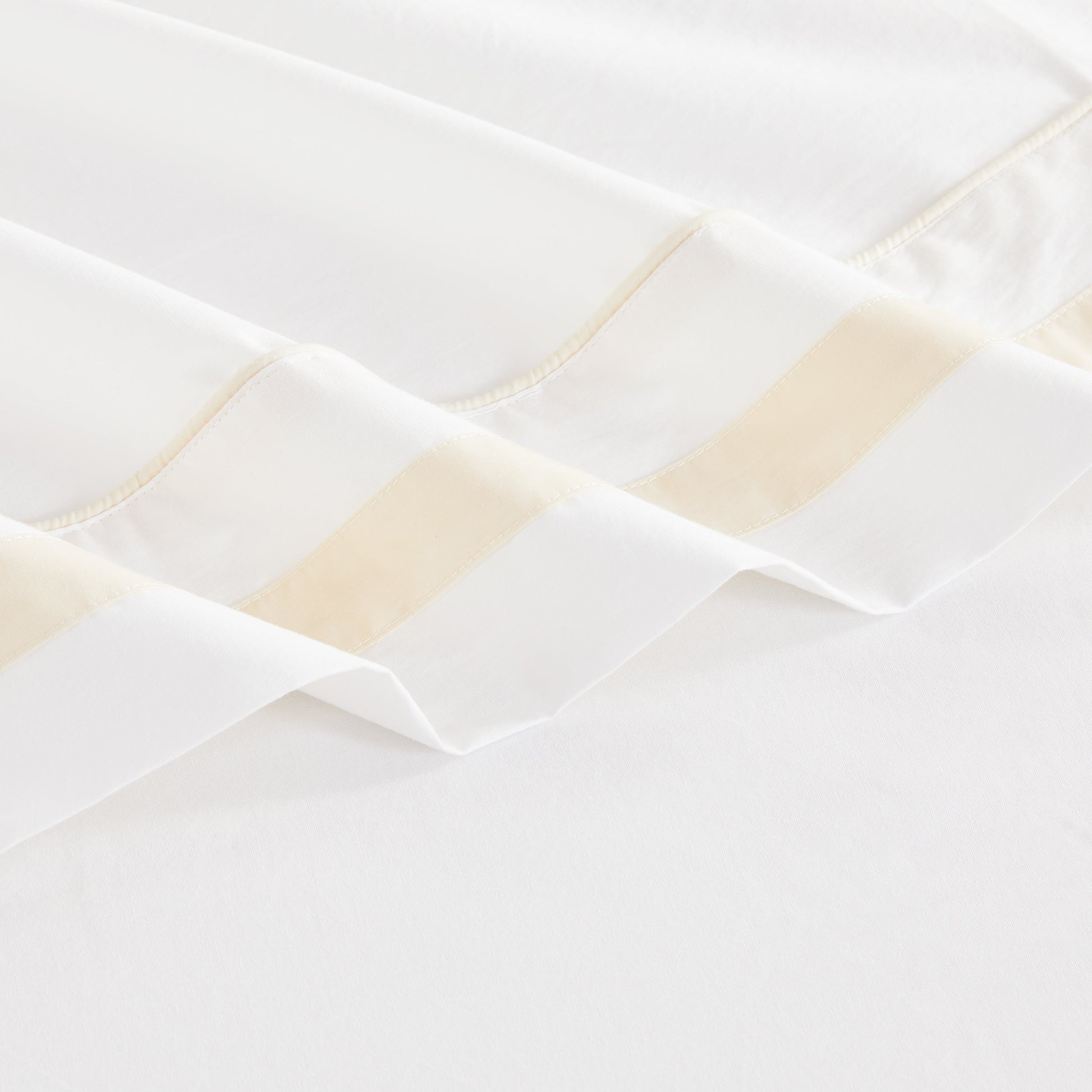 We weave our Percale bedding by laying one warp thread over one weft thread in a one-to-one ratio. This produces a fabric with a matte finish that is soft yet durable, crisp and cool to the touch. We added a tailored band and piping to the edge for sophisticated luxury and style.