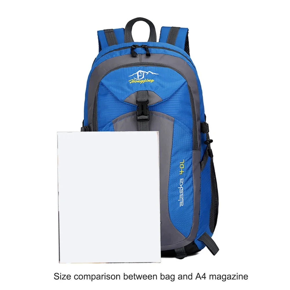 40L Mountaineering Bags Large-capacity Polyester Cycling Knapsack with Reflective Tape Men Women Convenient for Climbing Storage Feature: 1. Easy to Carry: Comfortable handle design, effectively relieve hand fatigue. 2. Zipper Design: Metal double zipper design, strong and durable, not easy to oxidize. 3. Practical: The bag has a practical front pocket design, and the bag has a practical side pocket, which can be used to put drinks and other items, which is convenient and practical. 4. Durable: Strong webbing, strong load-bearing and not easy to break. 5. Reflective Tape: Reflective tape at night, with high brightness, can be seen by others when traveling at night, which is safer.