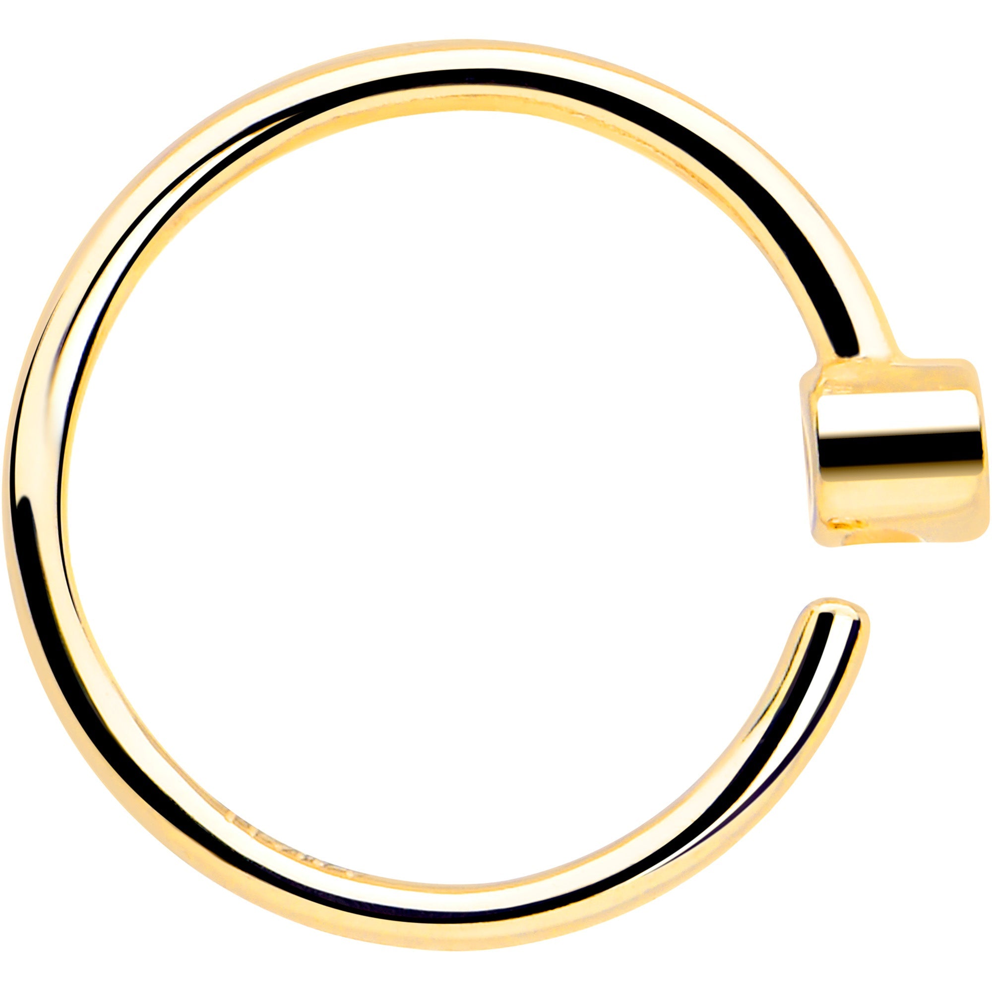 Want to show off your high-fashion style in every aspect of your look? Then this 22 gauge solid 14k yellow gold nose hoop is exactly what you need for a pierced look you can be proud of. It features a 1.5mm bezel set clear cubic zirconia gem for classic style. Bendable nose hoops are easy to wear and provide a classic look with minimalist style for suitability for countless looks. Simply open by gently pushing the wire in opposite directions to maintain the shape. Then insert the opening of the 8mm diameter hoop through the nostril and twist and turn carefully through your piercing and push ends gently back together. Ta-da! Solid gold style for you and your nose piercing.