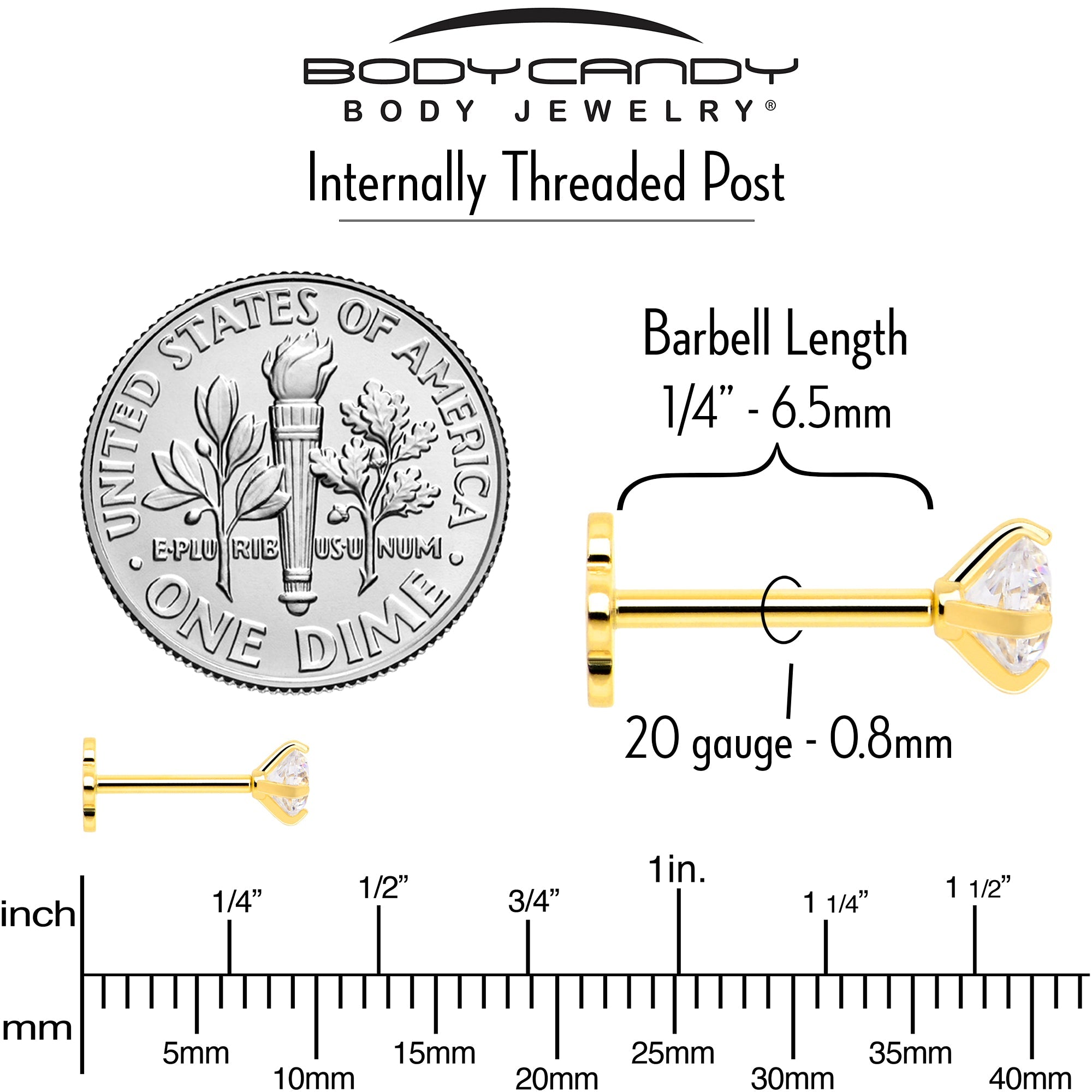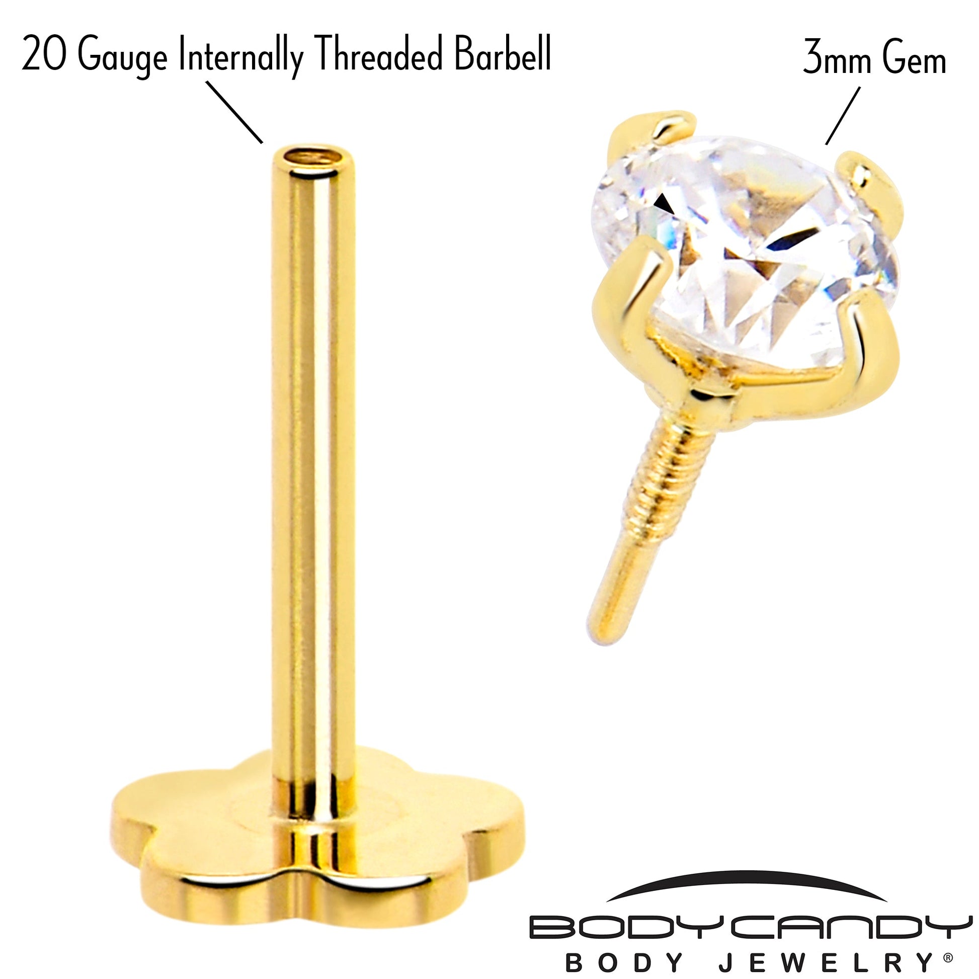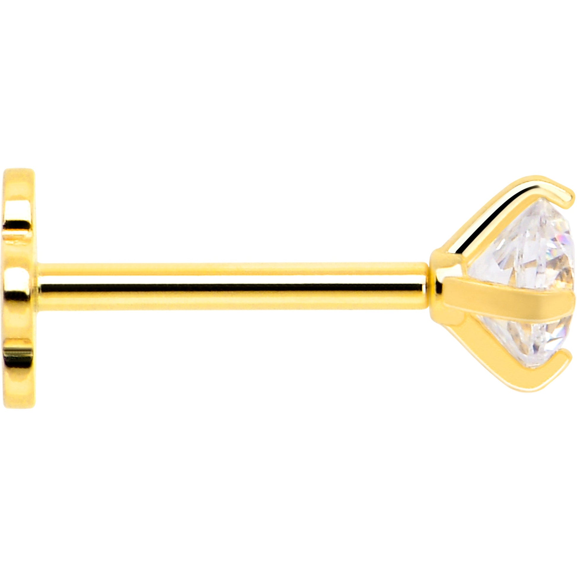 14k Yellow Gold Flat Back Earring 20G 3mm CZ Floral Reversible