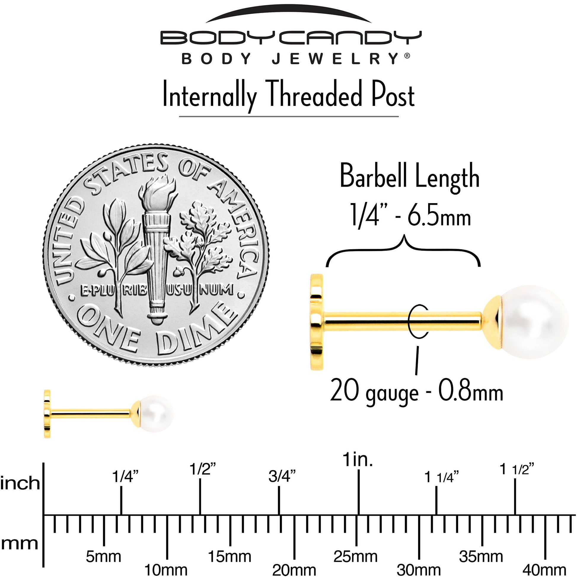 20 Gauge Flat Back Earring - Solid 14k Gold with Dazzling 3mm Faux Pearl
