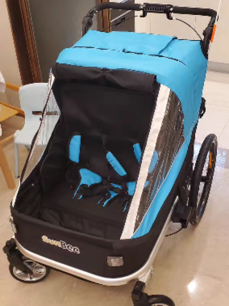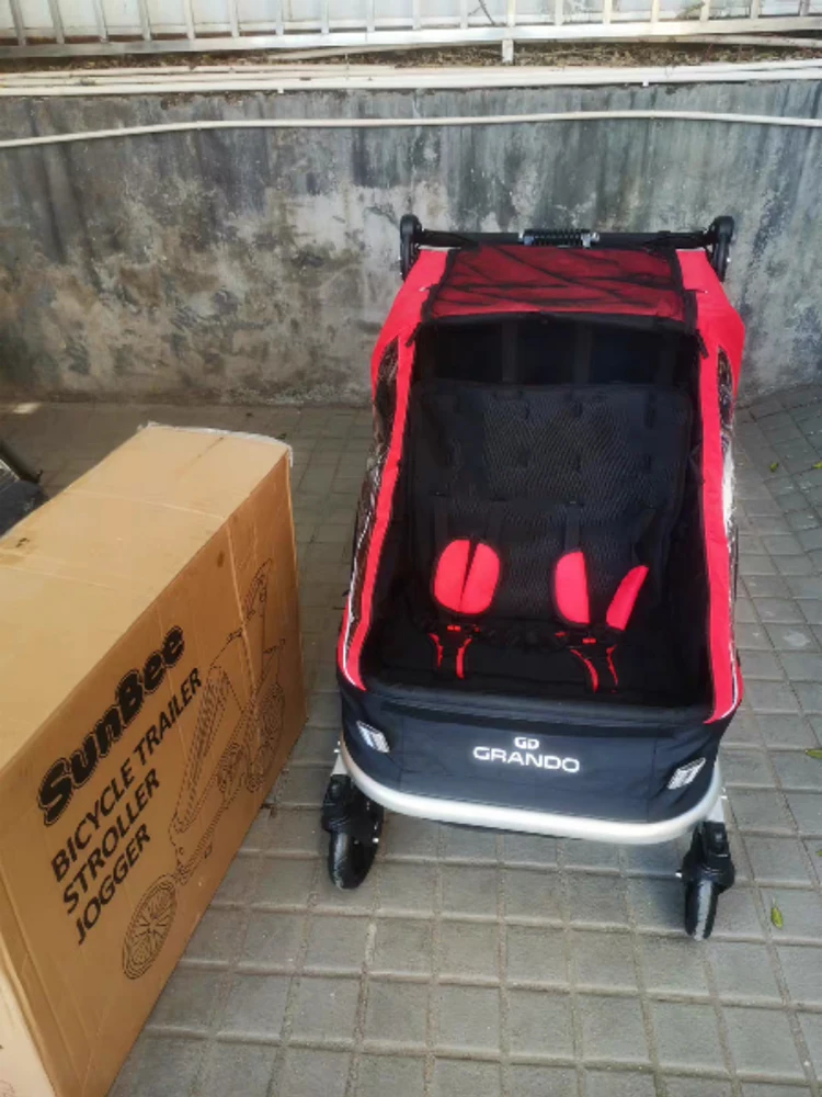 • Suitable for two children, can hold max 2x 22kg + 5kg of luggage. • The trolley has 2x 20 "pneumatic wheels.