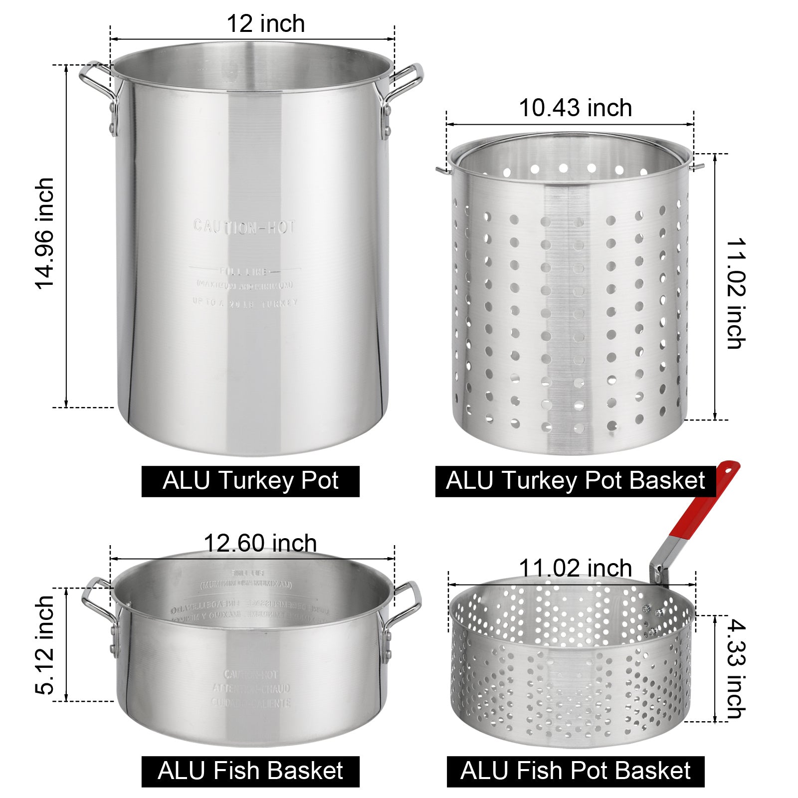 Turkey Pot: 30.5cm In Diameter, 38cm In Height Inside The Pot, 26.5cm In Diameter In The Inner Basket Of The Turkey Pot, 28cm In Height