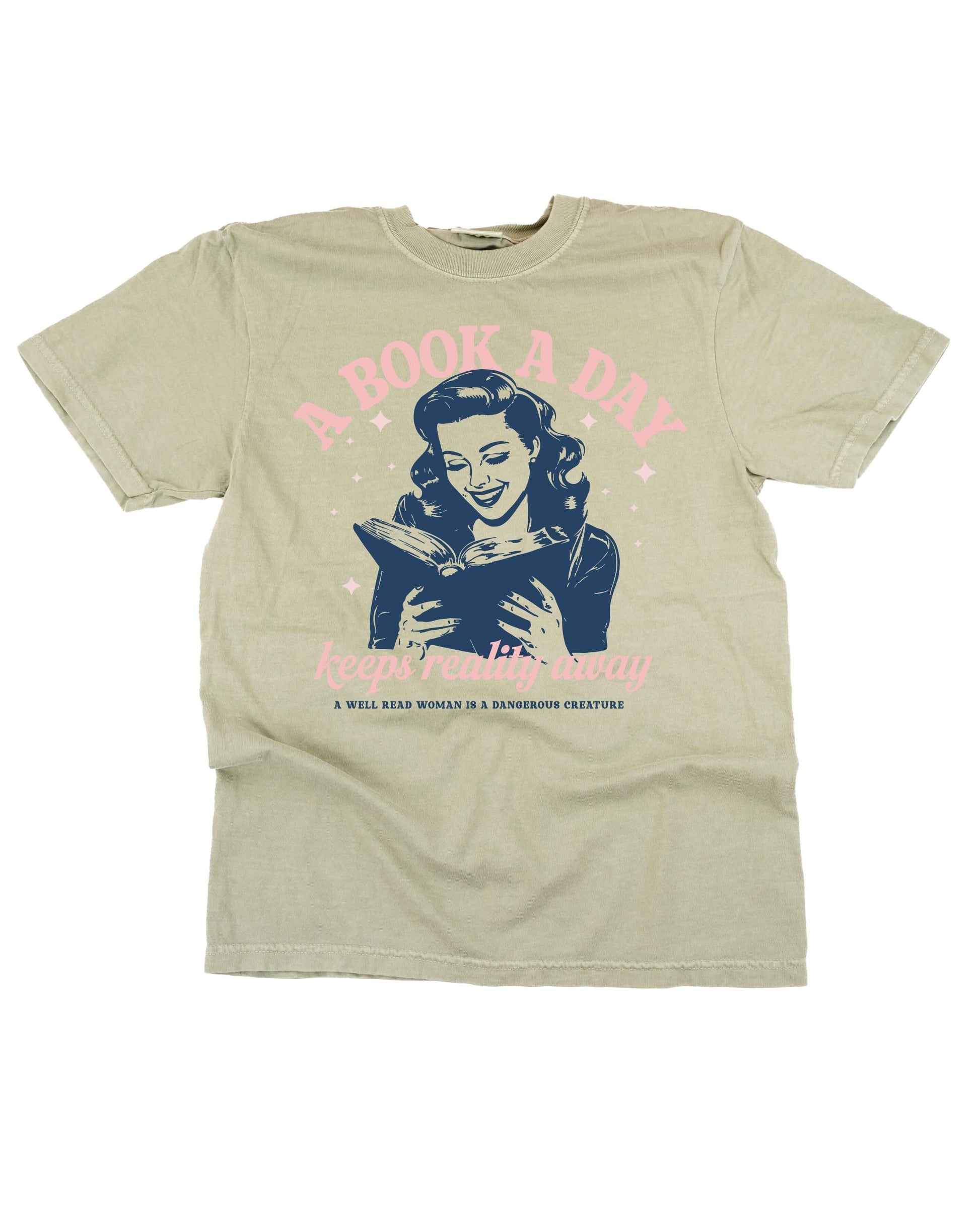 The A Book A Day – Comfort Colors Tee is the perfect staple for book lovers who want to escape reality and wear their passion proudly.