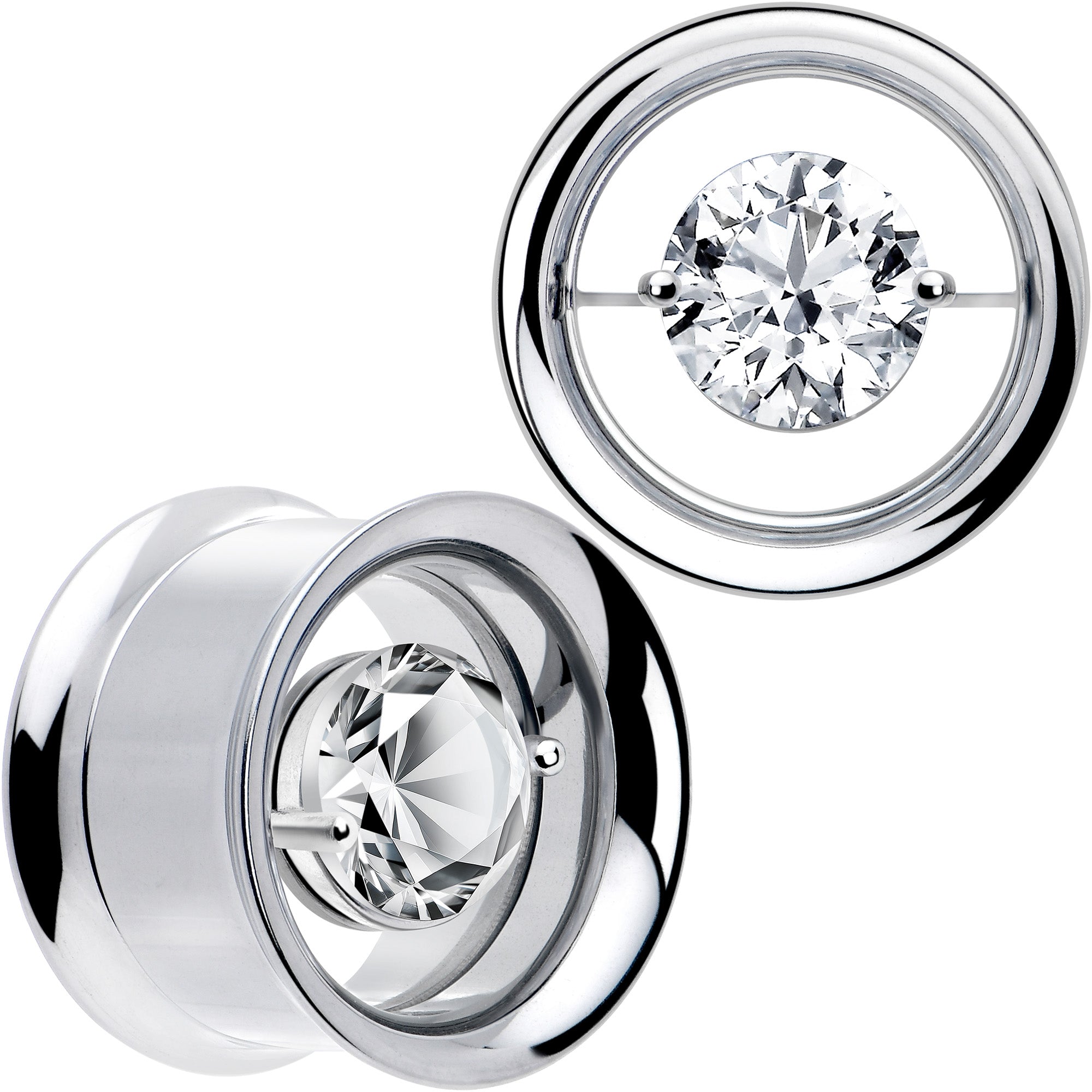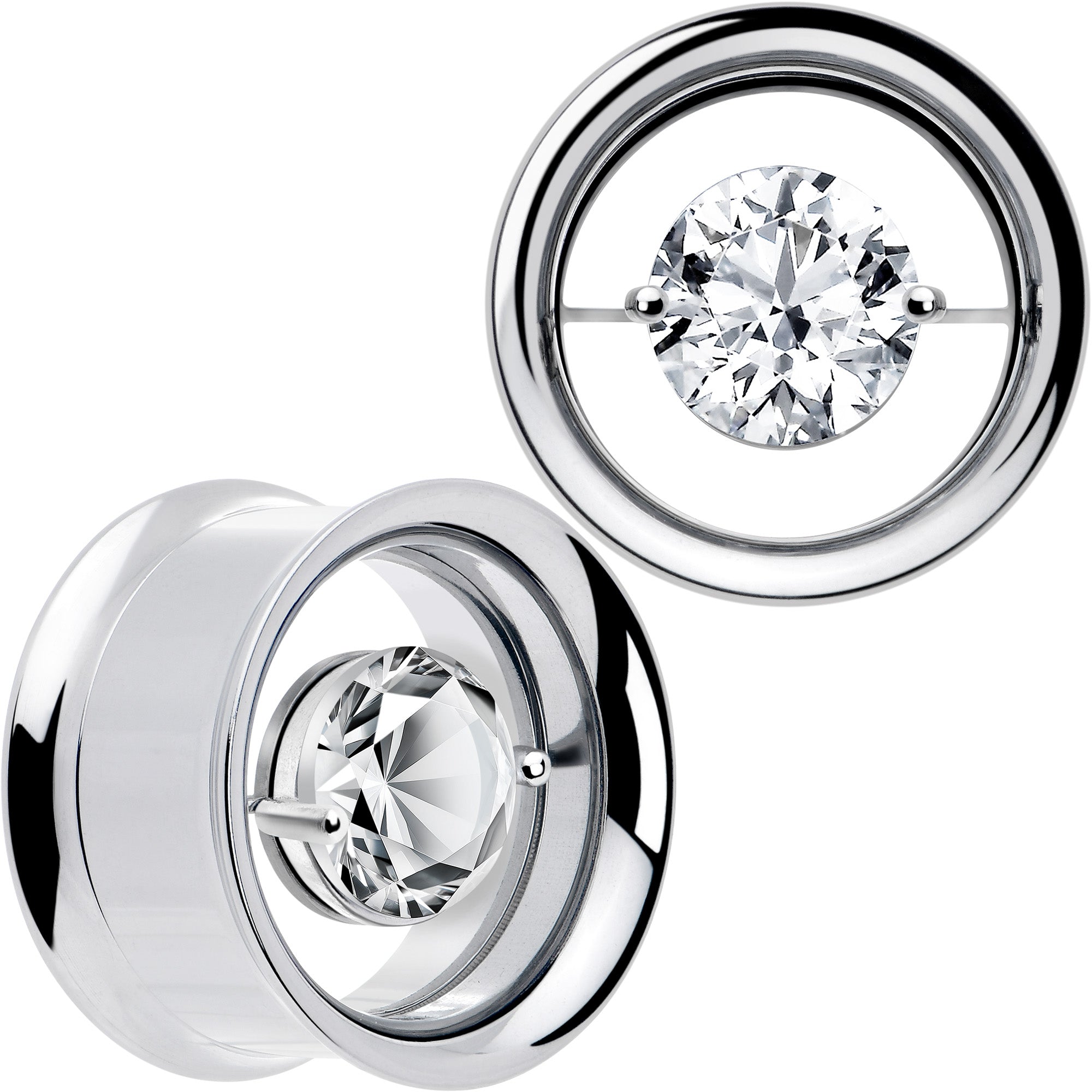 Get style that will leave you floating with these plugs for stretched lobes! They're made with 316L surgical grade stainless steel and feature a screw fit design for easy insertion and removal. Each one features a tunnel style with a color gem suspended in the center to give the appearance that it is floating. Classic style and eye-catching glamour combine for a set of ear gauges that will have you floating on cloud nine. Sold as a set of two.