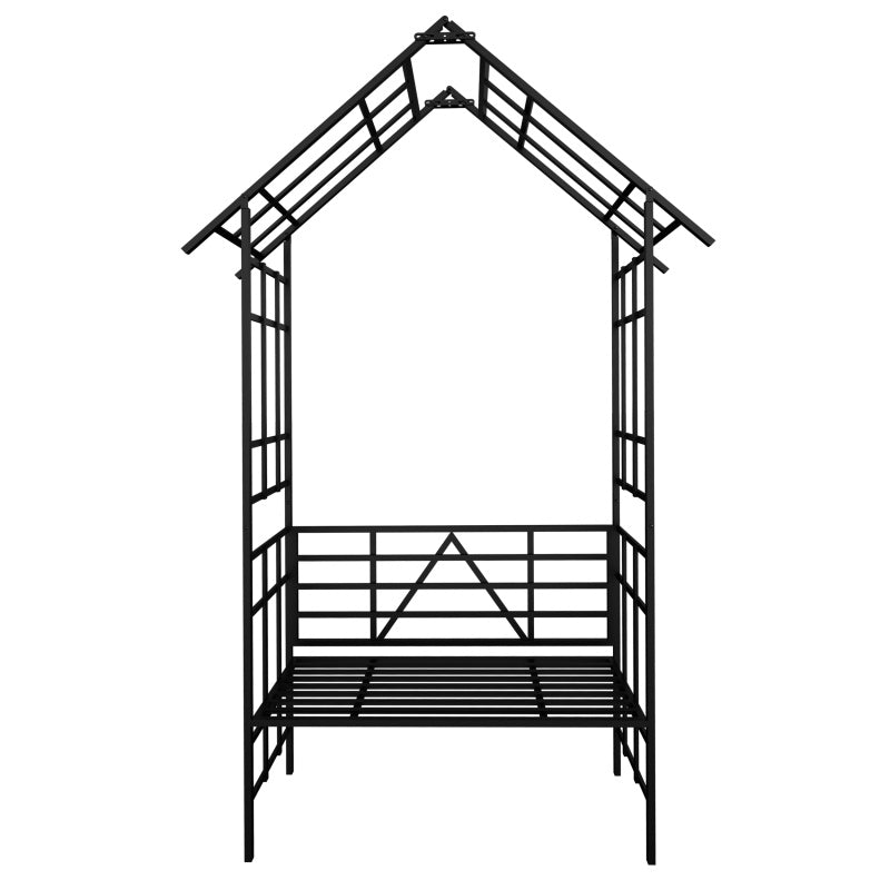 Product Size: W58.07*H97.24*D16.93''. The nice design of this flat garden arbor bench gives a sense of privacy in your garden.